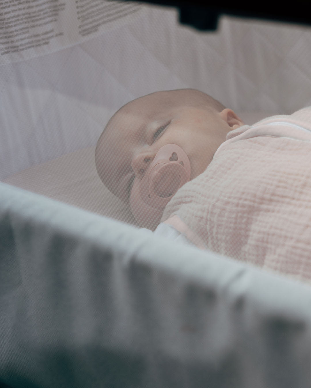 Ja – wenn es gut sitzt und nicht verrutscht. Unsere passgenauen Laken verhindern Faltenbildung und ersetzen lose Textilien, die sich im Gesicht des Babys sammeln könnten.