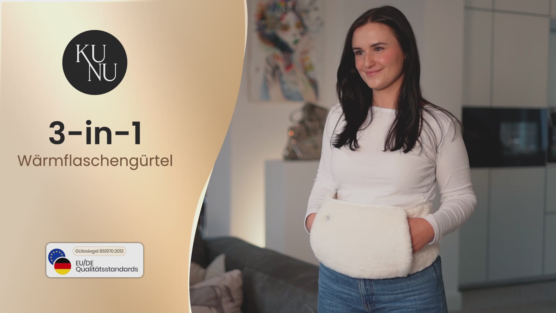 Unser Bestseller – wahrscheinlich der kuscheligste Wärmegürtel Deutschlands! Der Kunu Wärmegürtel bietet dir wohltuende Wärme genau dort, wo du sie brauchst, ob bei Regelschmerzen, Rückenschmerzen oder Verspannungen. Er hilft dir, Schmerzen zu lindern, und das ganz ohne Medikamente. Die extra weiche Oberfläche sorgt für ein besonders angenehmes Tragegefühl, während du deine Hände für die wichtigen Dinge im Alltag frei hast.