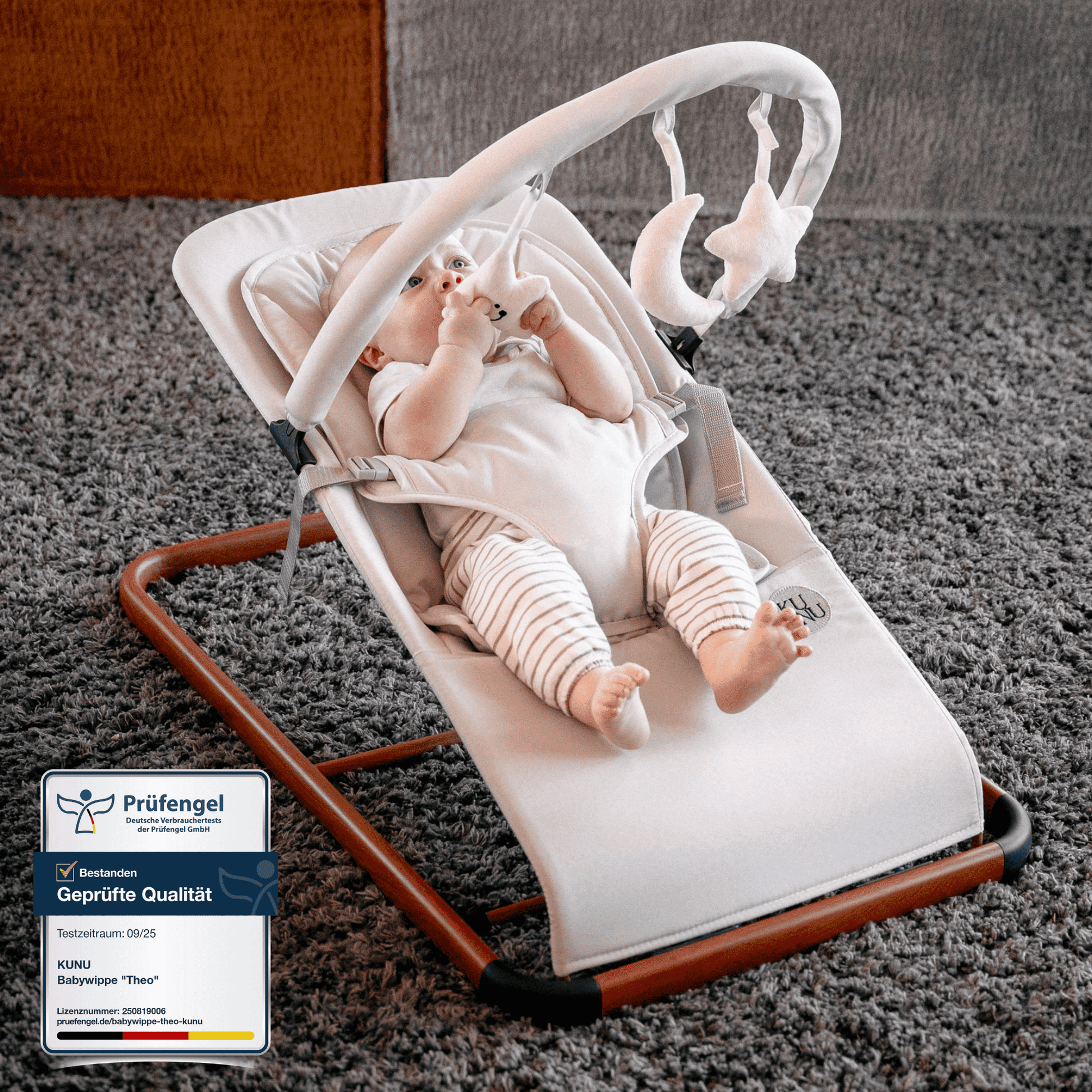 Wir freuen uns riesig, dass unsere Wippe "Theo" jetzt endlich auf dem Markt ist. Entstanden ist sie aus dem echten Leben mit unseren eigenen Kindern – und aus dem Wunsch, anderen Eltern einen verlässlichen Begleiter für die ersten zwei Jahre mit Baby an die Seite zu stellen.
